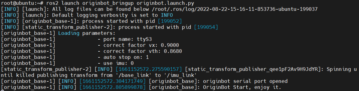 After the SSH connection to OriginBot is successful, enter the following command in the terminal to start the robot chassis: